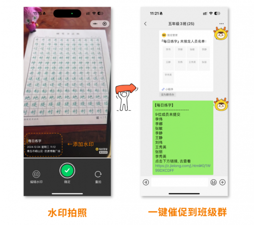 作业发布后,班级群内成员自动收到提示。(需关注接龙管家公众号)