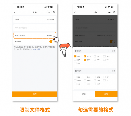 可收集图片、文件(视频、文档、压缩包)等几十余种信息格式,支持限制文件格式,非指定格式无法上传。