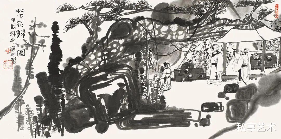 松下忘归图-33.5cm×69cm-纸本水墨-2024年