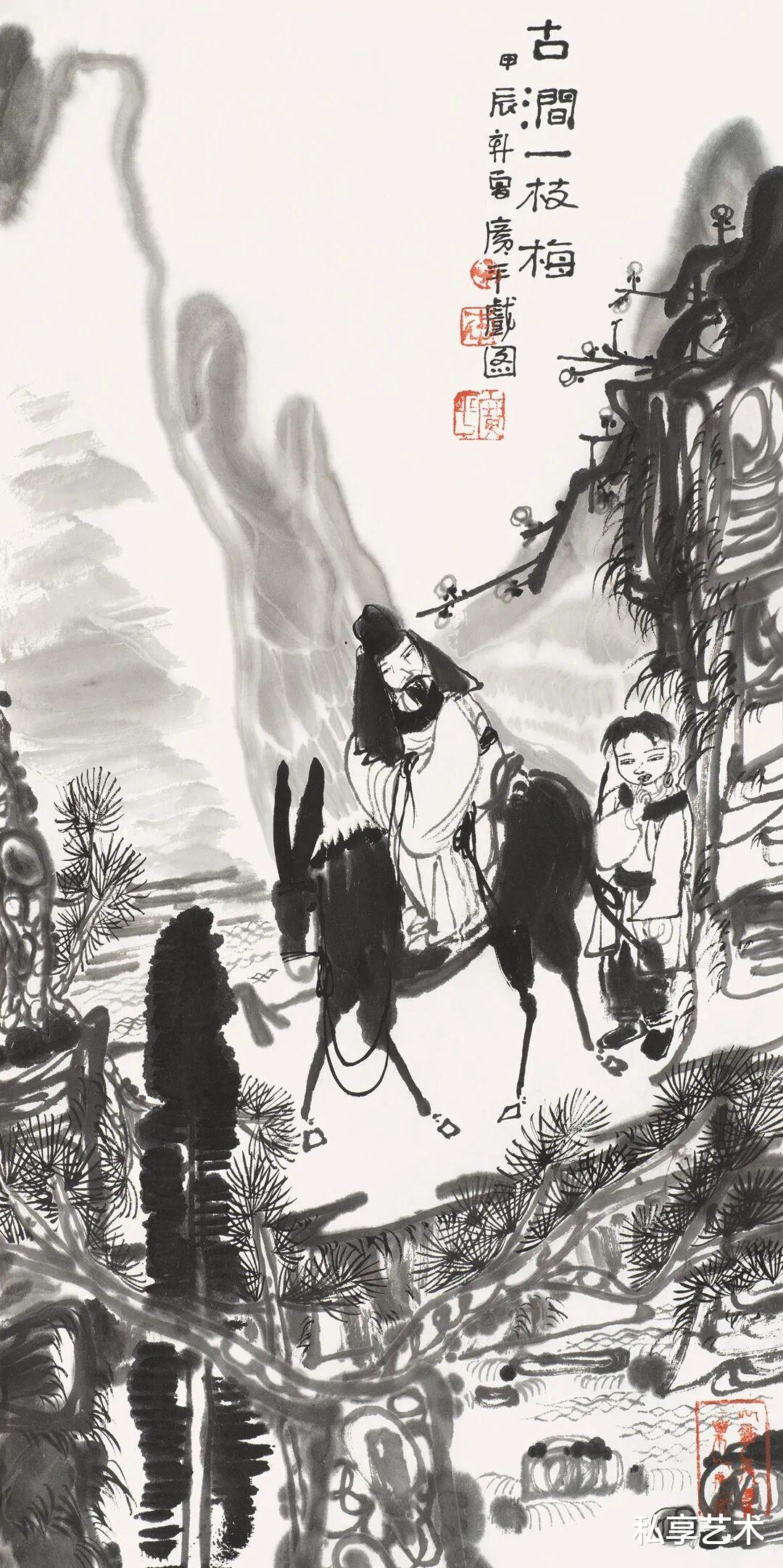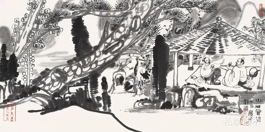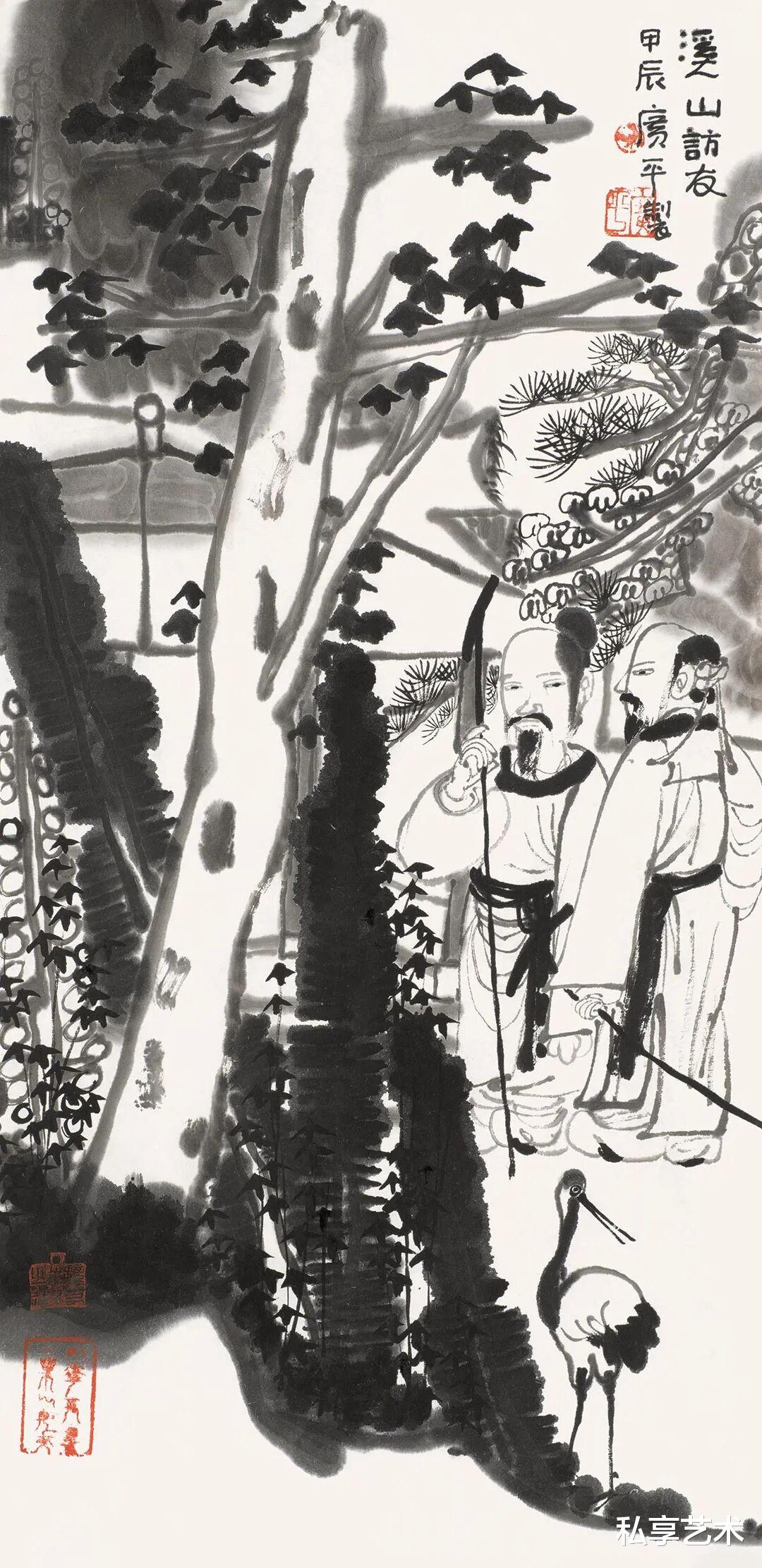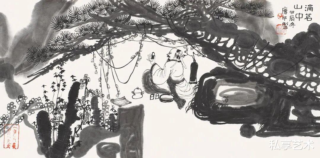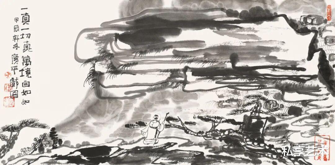 我生于北方大地,性属放旷一路,其修书法,直取大篆,如散石盘,毛公鼎;汉隶取法石门颂,礼器,好大王;魏晋则喜石门铭,张黑女墓诸碑,唐人则喜颜鲁公;算是碑学一路,取其朴茂大气,浑漭雄肆,与画乃然。即令所做水墨小品,亦求其沉郁。此时所做人物,内容多以古人为题,亦做仕女,只取其意,未见娇媚。