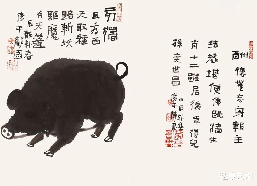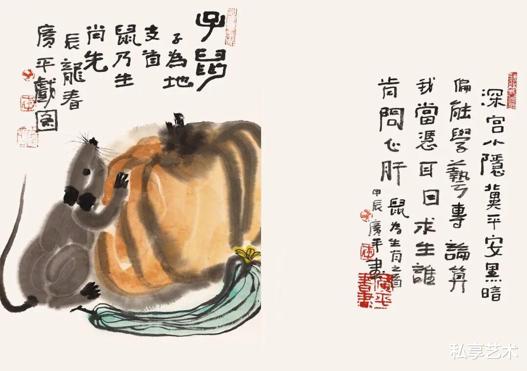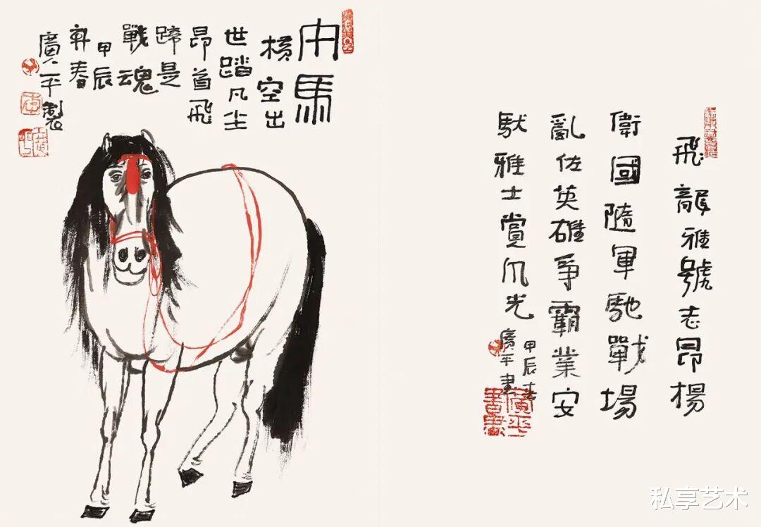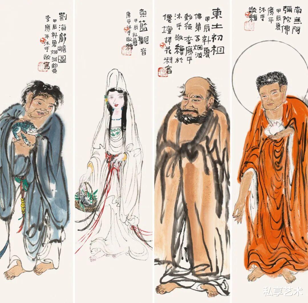 我生于北方大地,性属放旷一路,其修书法,直取大篆,如散石盘,毛公鼎;汉隶取法石门颂,礼器,好大王;魏晋则喜石门铭,张黑女墓诸碑,唐人则喜颜鲁公;算是碑学一路,取其朴茂大气,浑漭雄肆,与画乃然。即令所做水墨小品,亦求其沉郁。此时所做人物,内容多以古人为题,亦做仕女,只取其意,未见娇媚。
