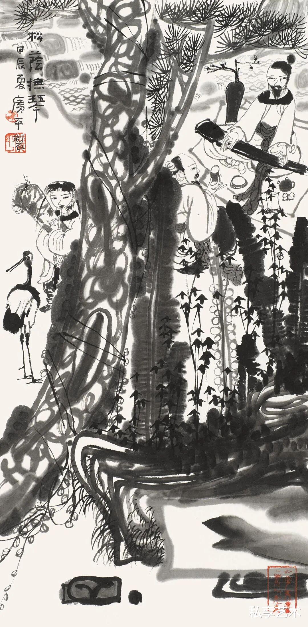 松荫抚琴-69cm×33.5cm-纸本水墨-2024年