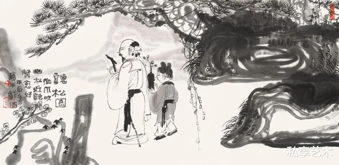 听松图-33.5cm×69cm-纸本水墨-2024年