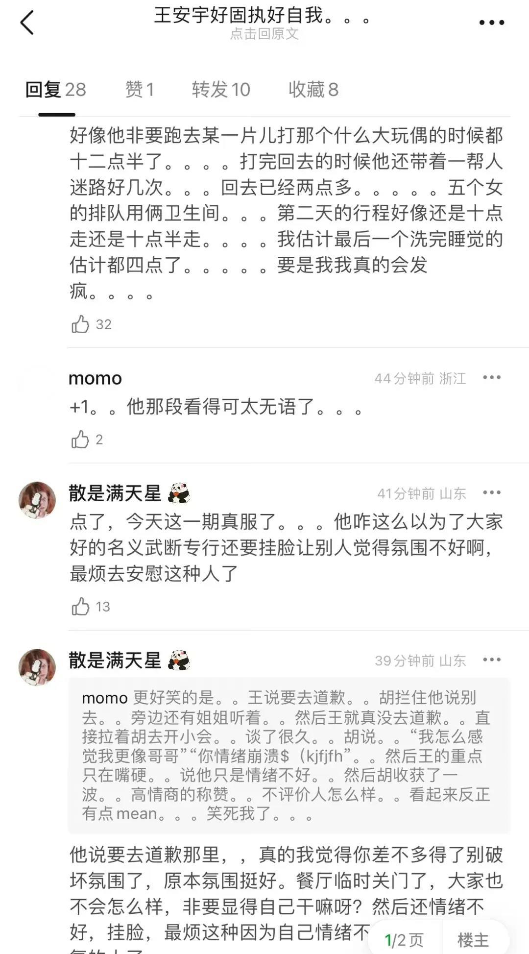 王安宇在《花少》里的表现被吐槽了,好多人说他独断自我,不尊重其他姐姐的意见,偷奸耍滑,只说不做!
