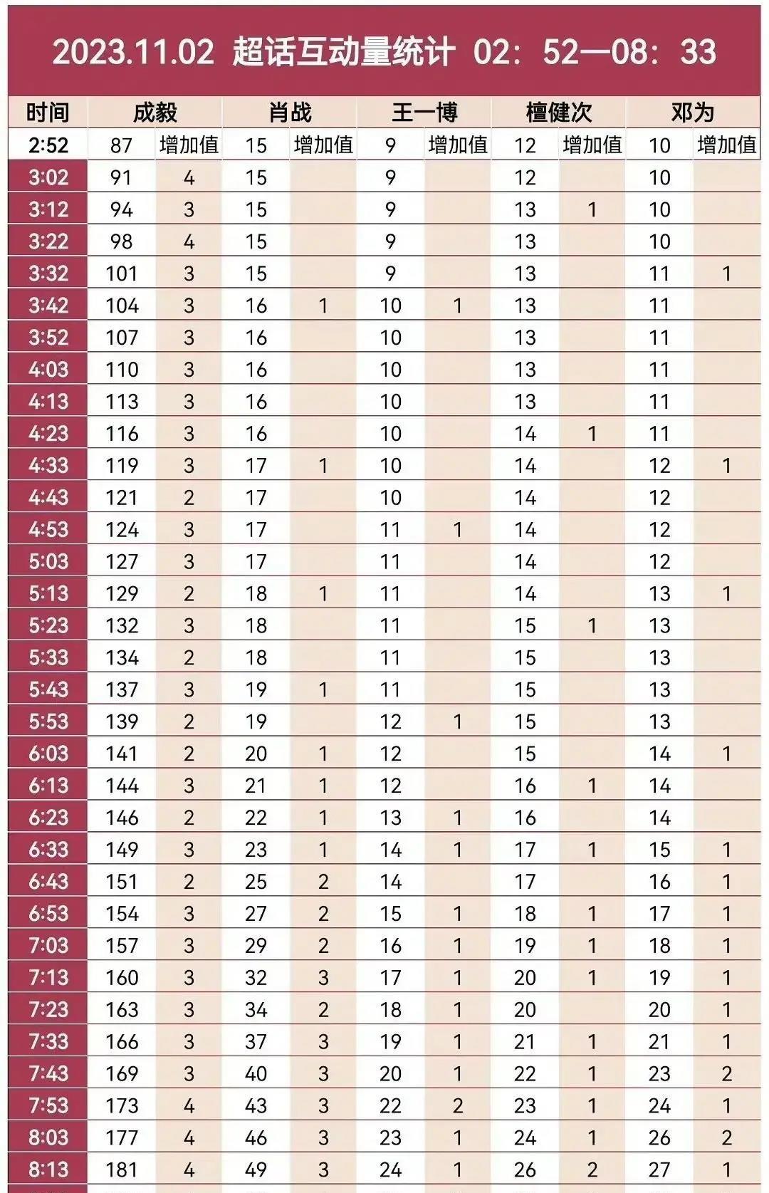 肖战 王一博 成毅 檀健次 邓为的超话互动量统计,这准吗[思考]