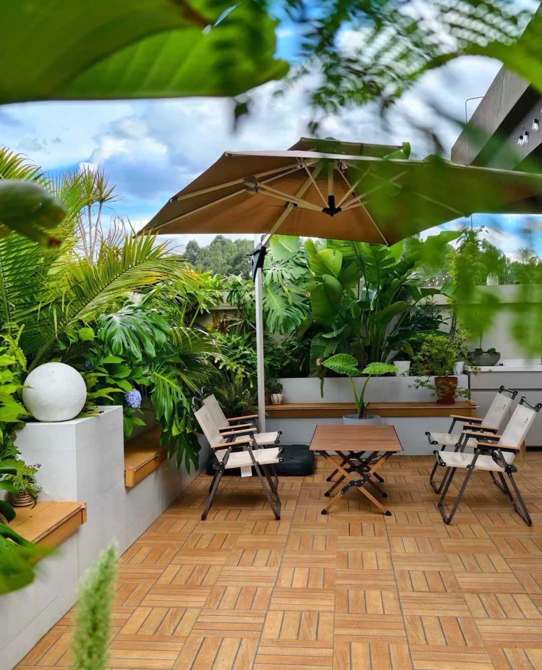 对比一楼的院子,顶楼的露台的创造性还是比较自由的,空中花园、阳光房都是可以实现的。