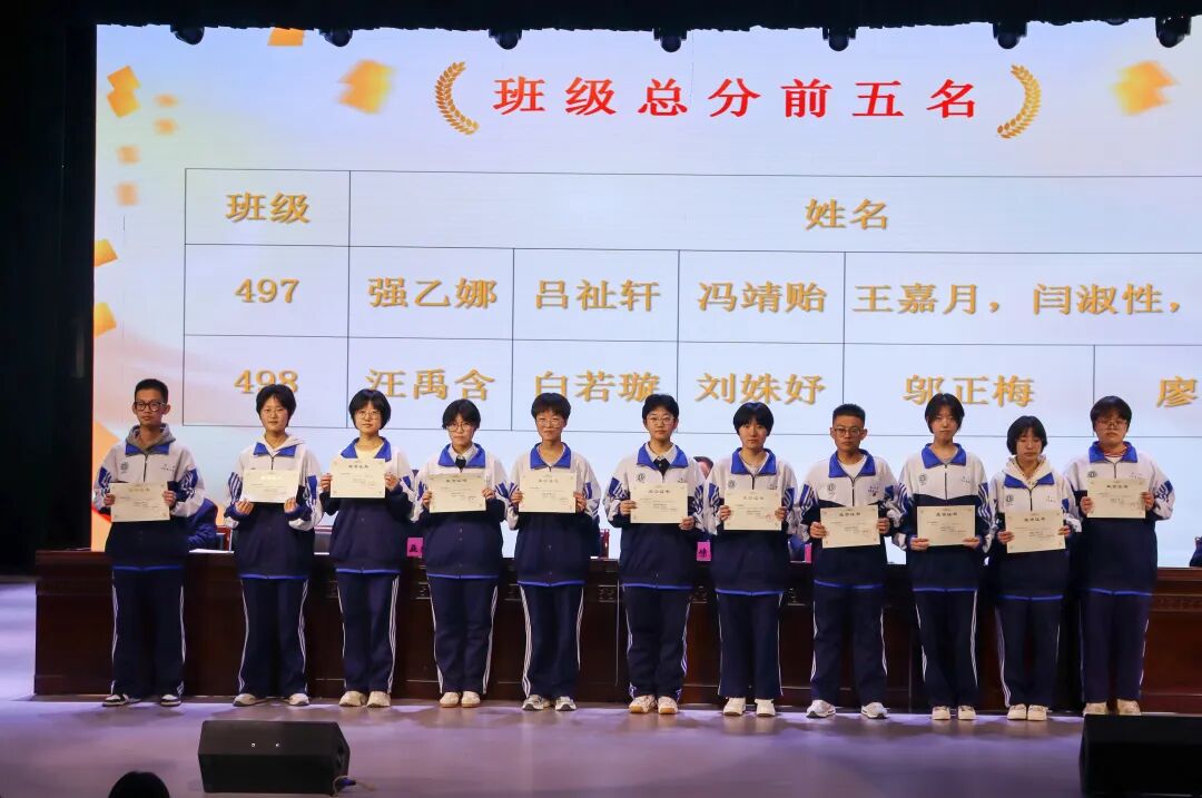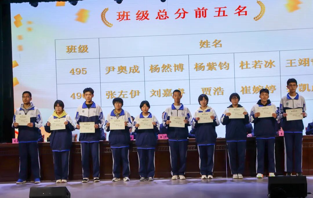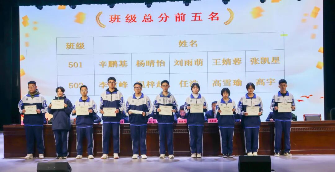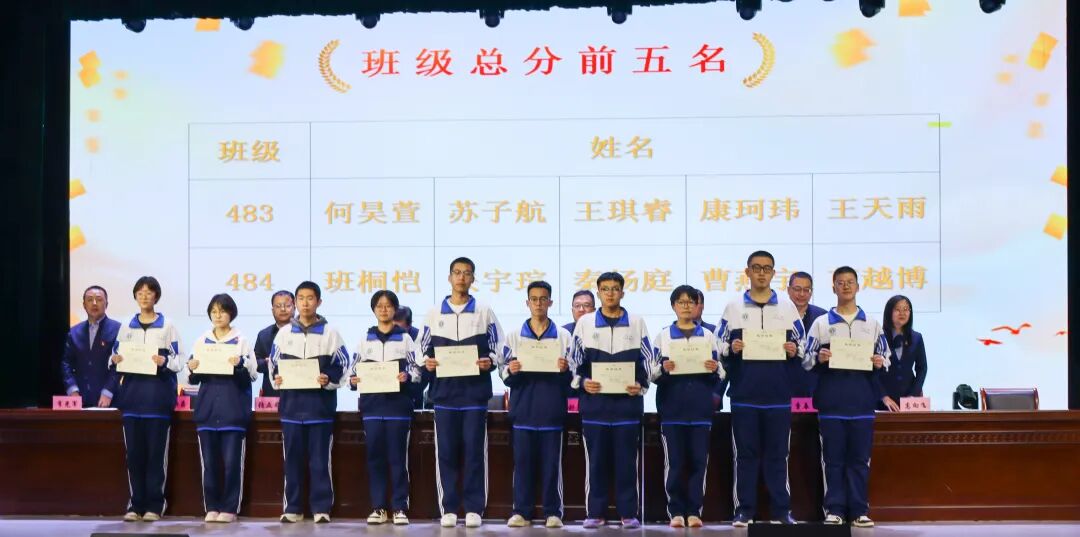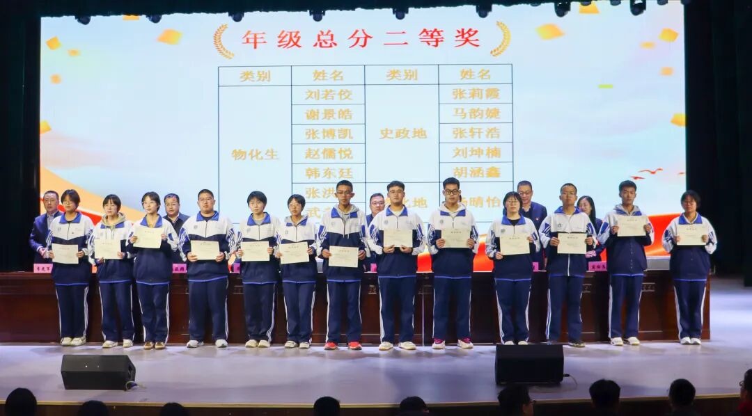 伴随着庄严的国歌声,表彰大会正式拉开序幕。校党总支书记樊东方同志宣读了高三年级期中考试表彰决定及表彰名单。随后,校领导为荣获“年级总分一等奖”、“年级总分二等奖”、“单科状元”、“班级总分前五名”及“班级进步前五名”的同学们依次颁发了荣誉证书,台下响起阵阵热烈的掌声,向获奖学子表示祝贺。