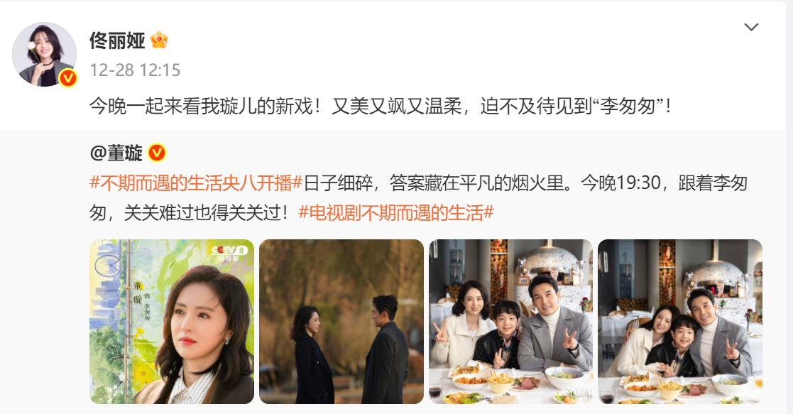 12月28日,董璇主演的新剧《不期而遇的生活》开播。