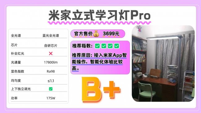 推荐款:米家立式学习灯Pro——接入米家App智能操作,智能化体验比较高。