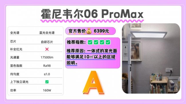 儿童护眼大路灯第六名:霍尼韦尔06ProMax;光通量大约17500lm,可覆盖约25㎡空间。
