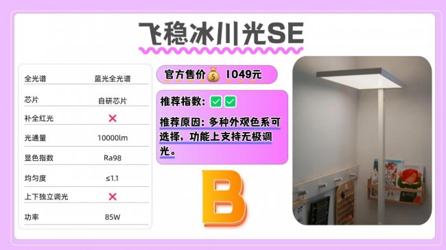 推荐款:飞稳冰川光SE——采用上下双向出光设计,让空间整体亮度更充足。