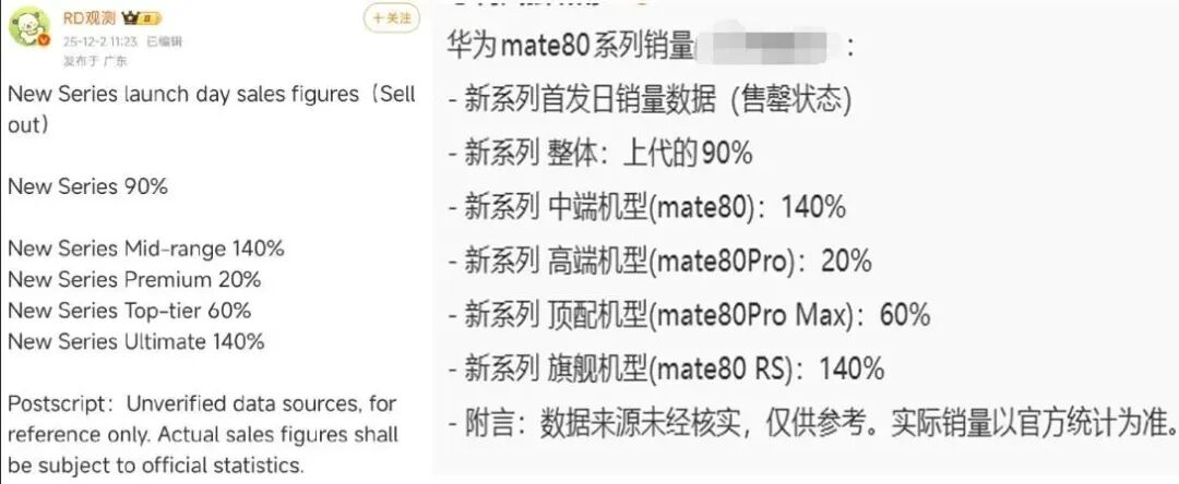 从供应链和博主透露的消息来看,主要原因在于备货量本身就不多。有数据显示,Mate 80 Pro在首销期的供货量仅为上一代Mate 70 Pro同期的20%,并不是需求不足,而是货源紧缺。