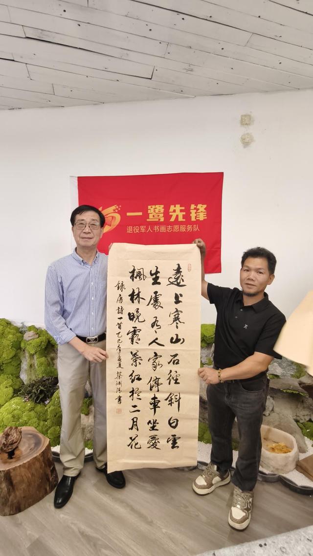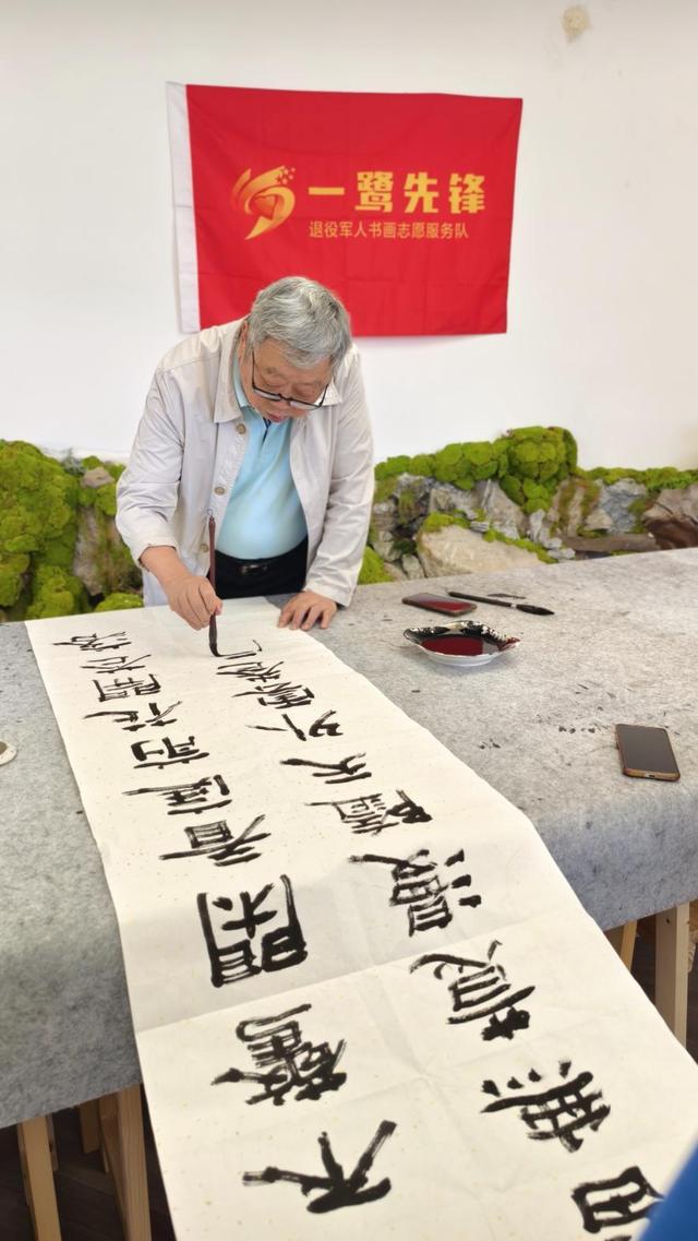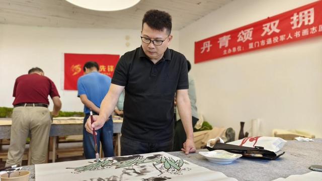 厦门市“一鹭先锋”退役军人书画志愿服务队负责人吴盛辉说:“厦门市在2025年4月23日召开的全国双拥模范城(县)命名大会上,连续第十次荣获‘全国双拥模范城’称号,实现了自1991年首届命名以来的“十连冠”。这一荣誉不仅体现了厦门作为‘英雄城市’在拥军优属、拥政爱民方面的表现,也标志着其双拥工作机制的持续创新与实践成效。厦门市老兵宣讲团和厦门“一鹭先锋”退役军人书画志愿服务队的成立和运行就是双拥工作的创新与实践。我们要珍惜全国双拥模范城‘十连冠’的荣誉,以丹青颂双拥,用瀚墨铸军魂。”