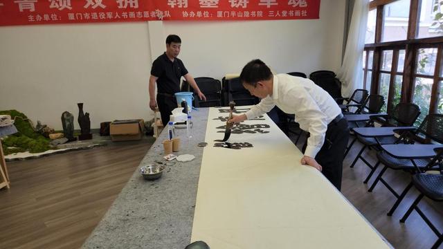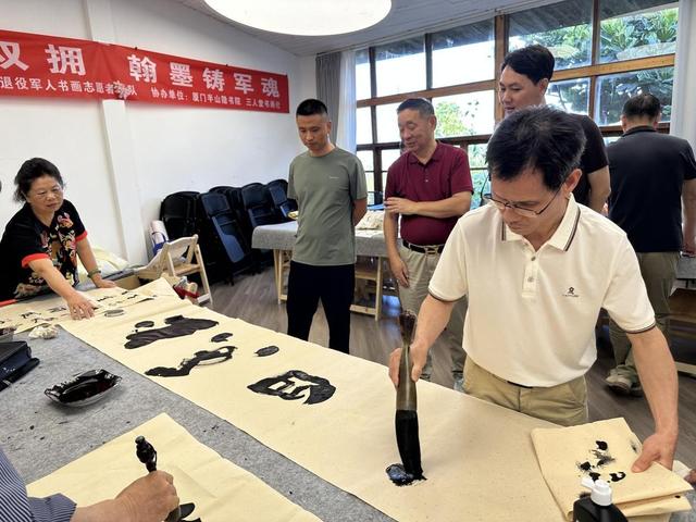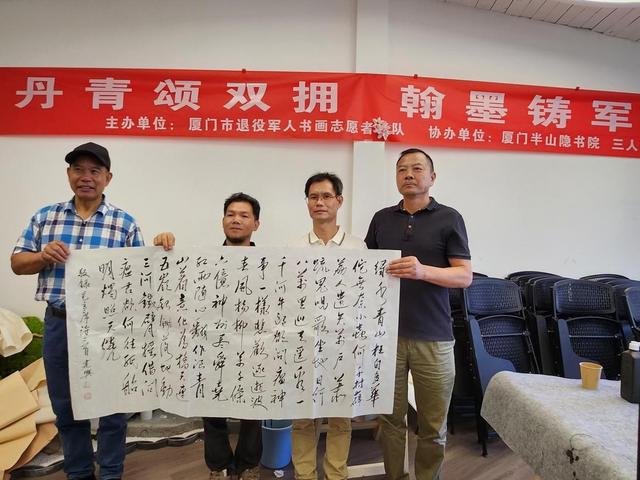 为弘扬中华优秀传统文化,丰富退役军人精神文化生活,展现退役军人“退役不褪色”的艺术风采。5月13日下午,厦门市“一鹭先锋”退役军人书画志愿服务队与厦门半山隐书院、三人堂书画社联合举办“丹青颂双拥,翰墨铸军魂”双拥主题书画笔会活动,庆祝厦门市实现全国双拥模范城“十连冠”。