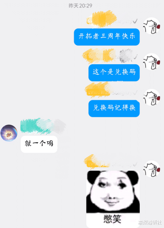 更有一众损友花式整活,故意打乱三段兑换码的顺序,让受害者误以为本次前瞻只发了一个兑换码,当受害者发出“就一个吗?”的疑问时,立马截图留念,分享自己的 “诈骗战果”。