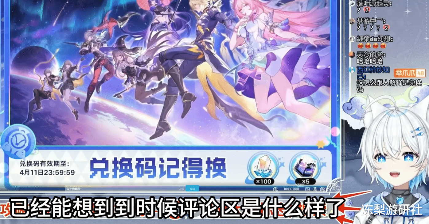 这三个兑换码一出,给蹲守直播间的玩家都整不会了。一些主播更是直接被气笑,攻略UP主“你的影月月”就在直播中吐槽,直言已经能预想到评论区的盛况了,不出意外的话,评论区肯定被 “崩铁前瞻兑换码到底是啥” 刷爆。