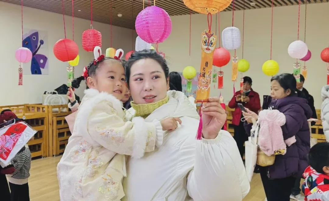 家长和孩子一起点亮小小的灯笼,提着亲手制作的灯笼,孩子们的脸上洋溢着满满的成就感。