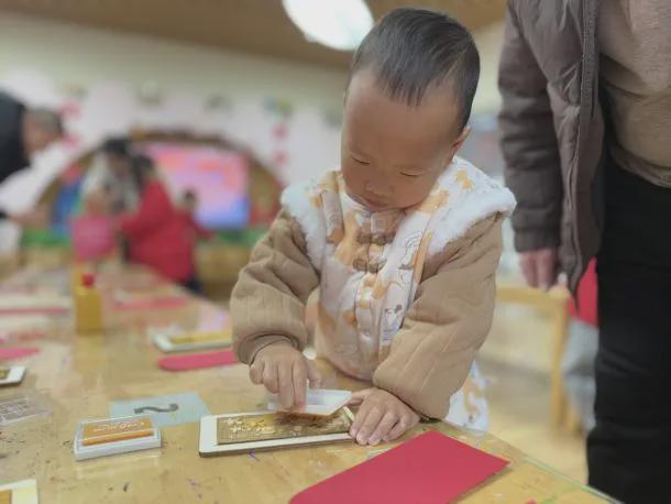 蘸一蘸颜料,用拓印工具在空白红包上轻轻一压,独一无二的新年红包就做好啦,装满了创意与祝福。