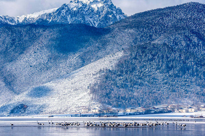 纳帕海坐落于香格里拉市城区西北方向不远处,每年冬季都有许多候鸟到此栖息越冬。在这里,红嘴鸥、斑头雁、黑颈鹤等随处可见,它们就在村子旁边悠闲活动。