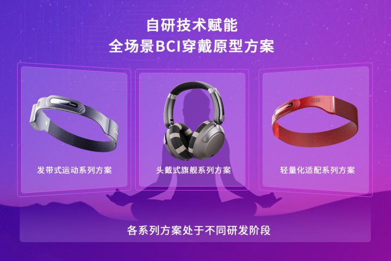 此次展示的脑电穿戴系列原型机,并没有追求复杂的产品划分,而是围绕几类典型使用场景,做了相对清晰的布局。