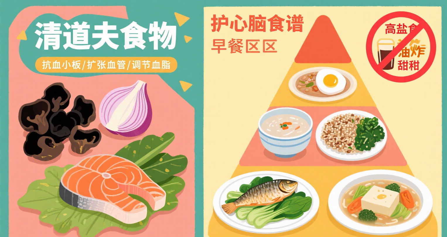 试试 “护心脑食谱”:早餐喝杂粮粥 + 水煮蛋,午餐吃糙米饭+清蒸鱼+绿叶菜,晚餐喝蔬菜豆腐汤。清淡又营养,血管才能“轻松”运行。