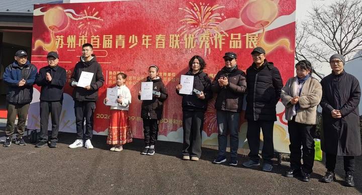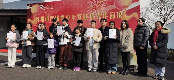 金马奋蹄财入户,祥龙摆尾福盈门;吴风迎福至,水韵贺春归;浓墨映影描得山川秀色,巨毫生辉写就时代华章……一副副寓意美好、意境深远的春联,既是吴门文脉的薪火相传,又是当代青少年蓬勃朝气的诗意绽放。据介绍,苏州市首届青少年春联优秀作品展自2025年12月初启动征稿,得到了全市青少年的热烈响应,短短一个多月就收到近千副春联,经评委会初审、复审、终审等环节,共评出一等奖3名,二等奖6名,三等奖12名,优秀奖40名。