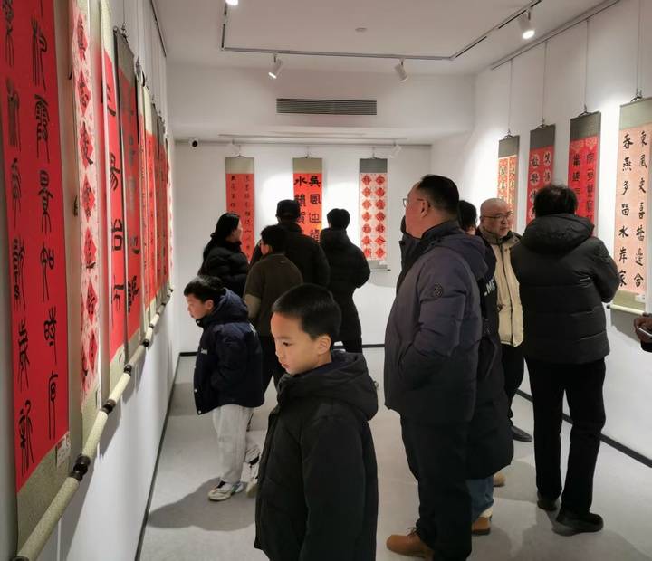 红联墨韵,喜迎新春。2月9日下午,苏州市首届青少年春联优秀作品展在苏州和合博物馆举行开幕仪式。展览由苏州市关工委、苏州市青少年书画协会联合主办,苏州市姑苏区书法家协会、苏州市山塘中心小学校、苏州和合博物馆协办,比那多超市苏州浒关店支持。相关领导、嘉宾,以及参展作者代表百余人参加仪式。