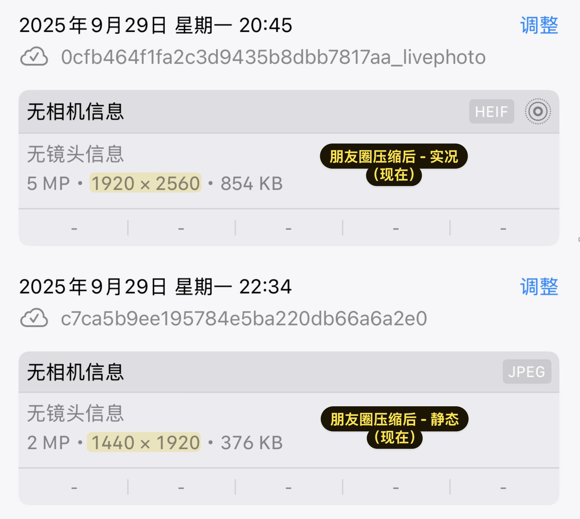 但现在,iOS 微信在画质处理方面有了显著提升。目前测试发现,将同样一张照片上传到朋友圈后,再次下载时分辨率已经提升到 1920x2560(实况图片),同一张图发送静态图片被压缩的程度也降低了。虽然仍然存在一定程度的压缩,但相比过去,画质清晰度有了明显改善。