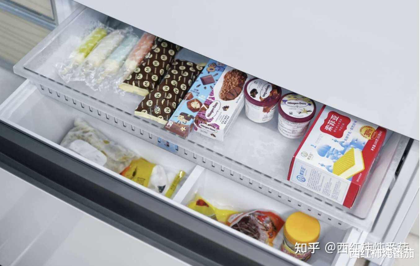 这两种冰箱的上半部分其实是一样的,横向空间非常充裕;最下层是两个抽屉,有部分产品甚至还会把抽屉做成变温空间▲