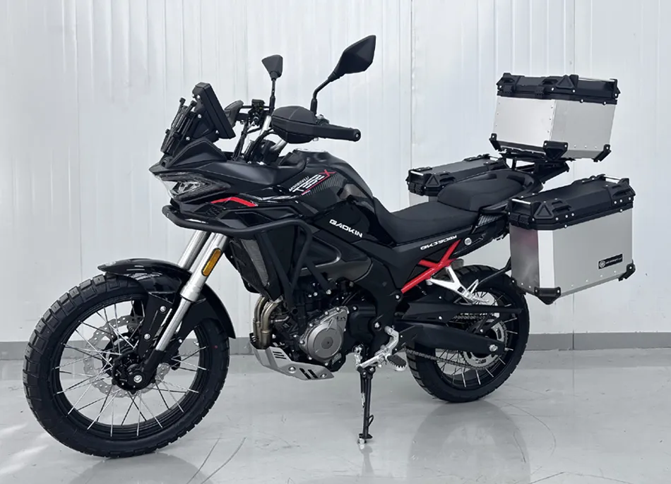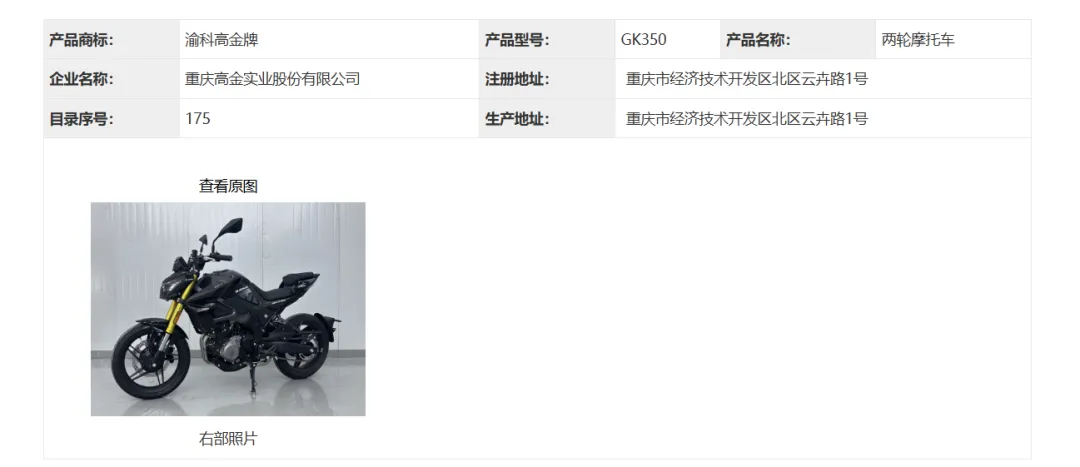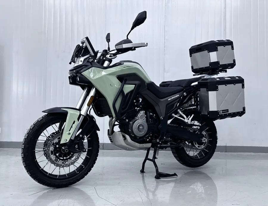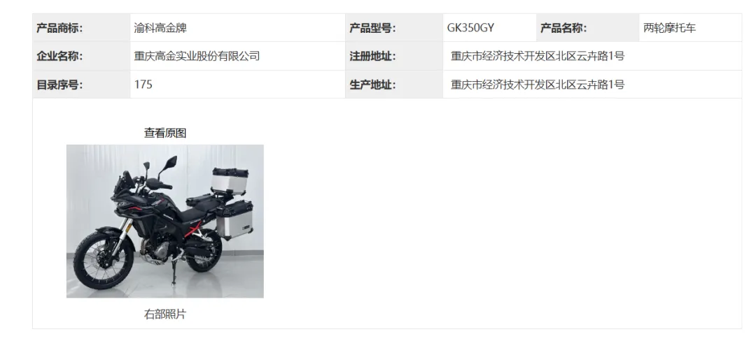 而探险版的GK350GY呢,带三箱的整备质量为215KG,采用前19后17的辐条轮毂配置,车头比较简洁中庸一些,不过不失!登记的图片中车辆没有风挡存在,应该还在适配中!
