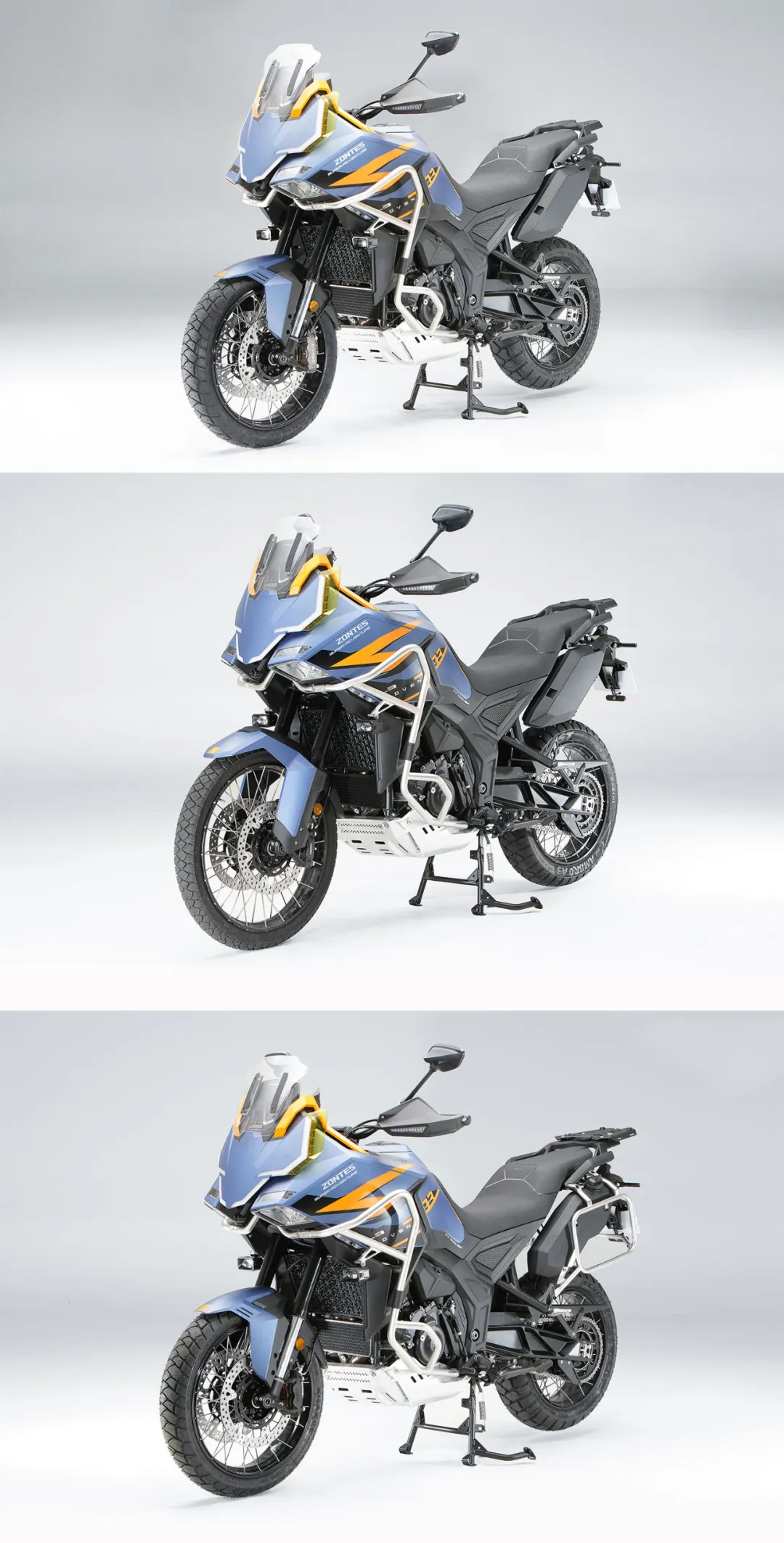 其中350车型一款为街车一款为探险车型,搭载了高金的GK271MP的发动机,双缸349cc,最大功率的30.5KW(41.5匹)的发动机。