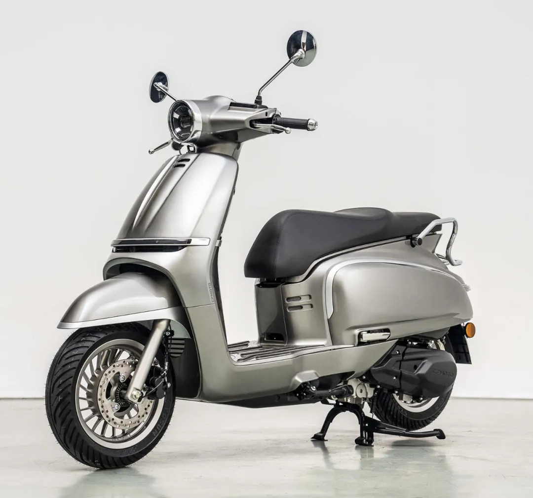 春风此前预热的复古踏板车终于现身目录,实车采用香槟银配色,金属质感突显高贵淡雅气质。