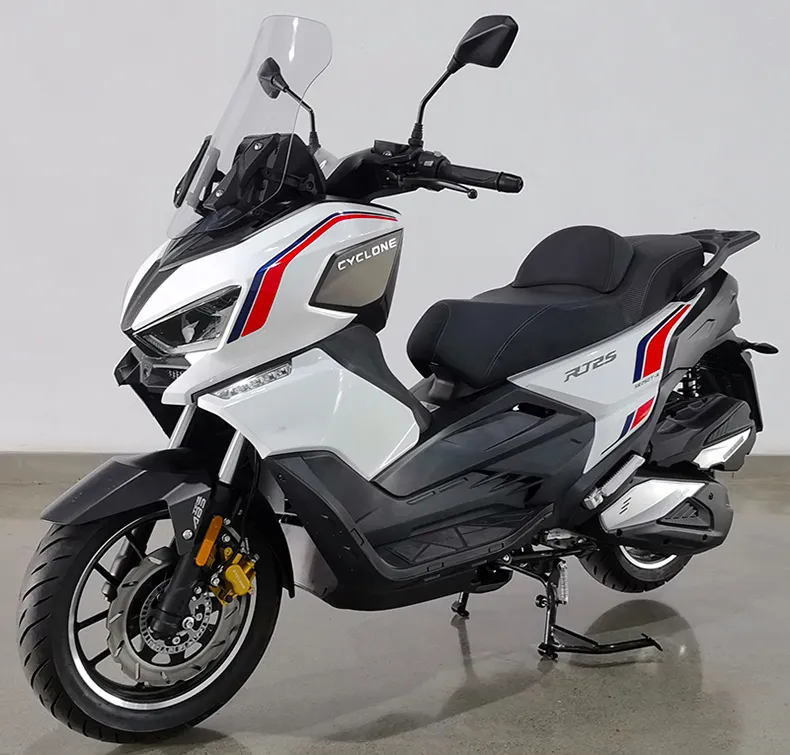 车辆搭载的是一个125cc的卧缸发动机,最大功率为6.2KW(8.4匹),前后17寸轮毂,车辆整备质量为111KG!