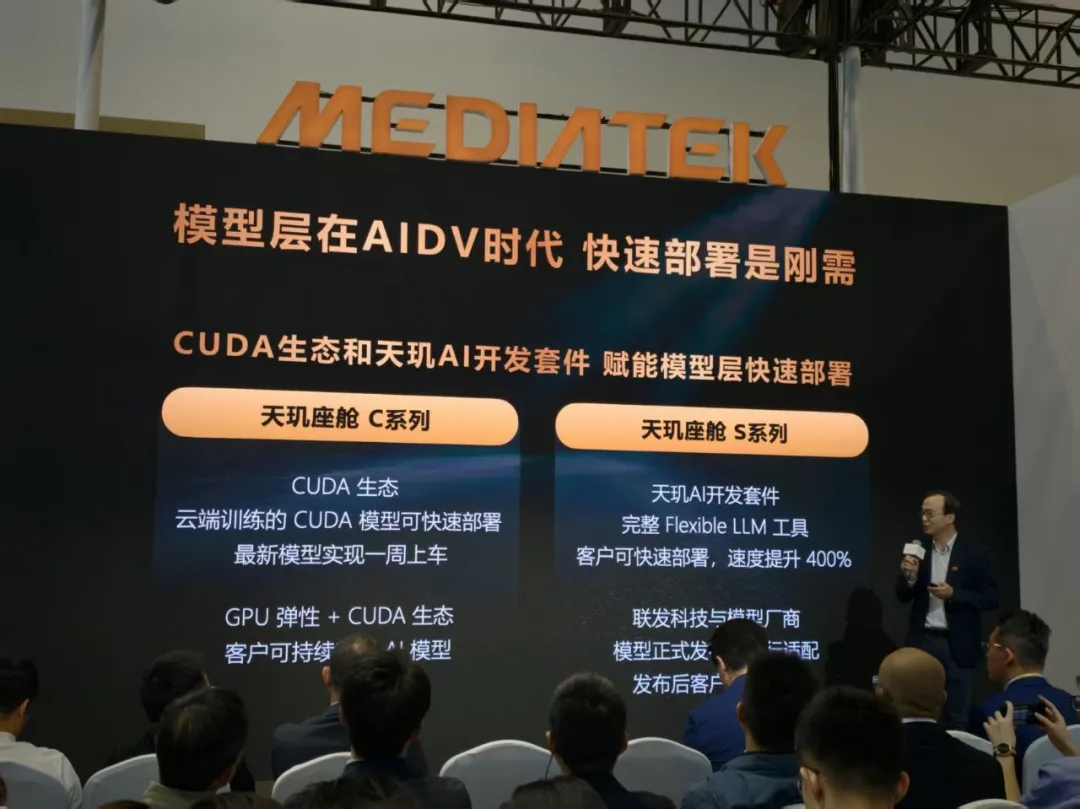 · 强大的底层架构兼容性:天玑汽车座舱平台C-X1集成NVIDIA Blackwell GPU架构与深度学习加速器,并支持NVIDIA CUDA生态。统一的端云同架构将有效助力车企和开发者快速部署多模态大语言模型,率先实现主动式智能体座舱创新场景。