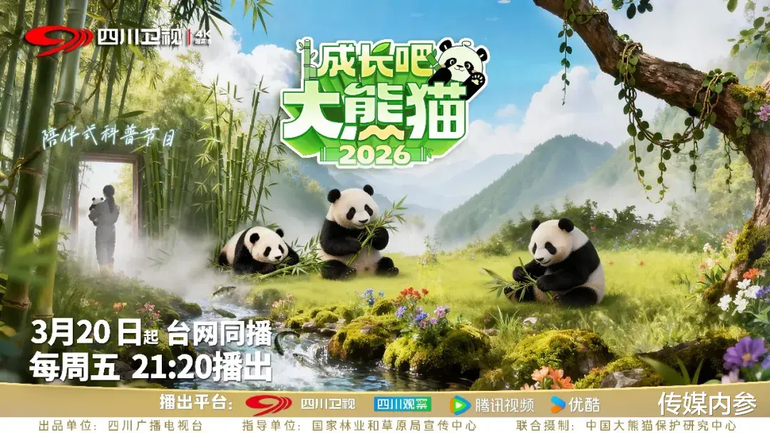 在这一整个春夏秋冬里,《成长吧!大熊猫2026》将持续定格熊猫从懵懂萌态到向阳成长的治愈瞬间,深情镌刻守护团队日复一日的坚守与热忱。节目以影像为桥,既描摹生命灵动之美,更传递守护生物多样性的赤诚初心。每周五21:20,关注各播出平台,共赴这场跨越四季的温暖陪伴之约。