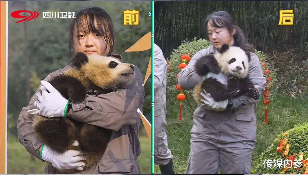 喜提“最崩溃的奶妈”称号的雅安基地饲养员周芳瑞来到节目现场,说起集体亮相时连续10次逃跑的云朵二崽,“30斤的甜蜜负担”“绕着台走了几万步”,我跑你追,每一次追赶和抱起都是深深的牵挂。