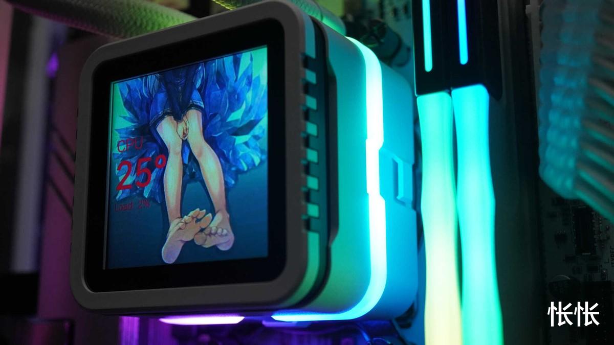 在自定义设置上,这块屏幕不仅支持静态的JPG、PNG图片,还可以截取MP4、MOV等视频,让水冷头的背景“动起来”,而且软件操作简单,光是换背景我都能玩一天。同时,这枚泵头还是磁吸设计,还可以调整俯仰角度,我可以根据需要让屏幕适应我的观看需求。