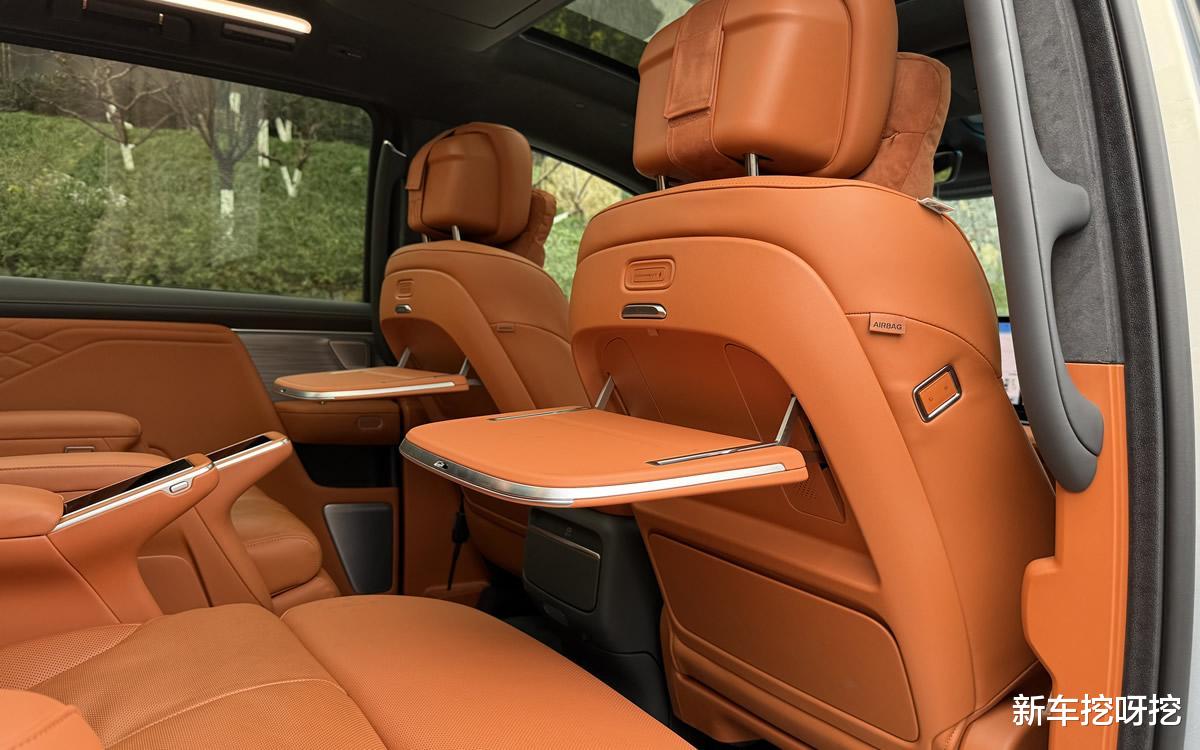 二排还有小桌板、无线手机充电槽、娱乐屏、智慧移动管家屏、有线充电接口,单独的杯托。你能想到的,能用到的都给配备了。尤其是智慧移动管家屏非常人性化,操作相关功能,再也不用低着头。总之,坐在第二排是真的很舒服,尤其是长途乘坐相当的爽。
