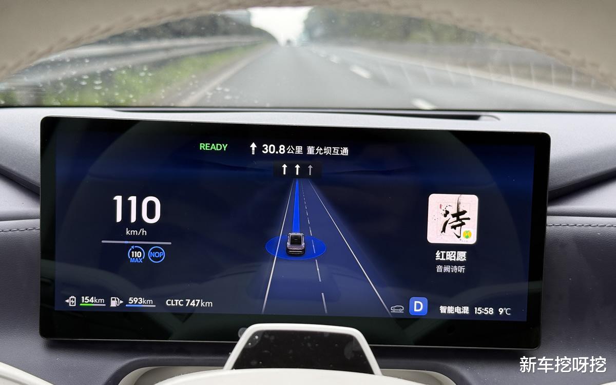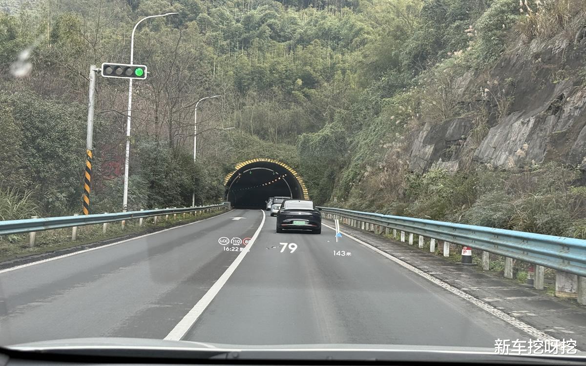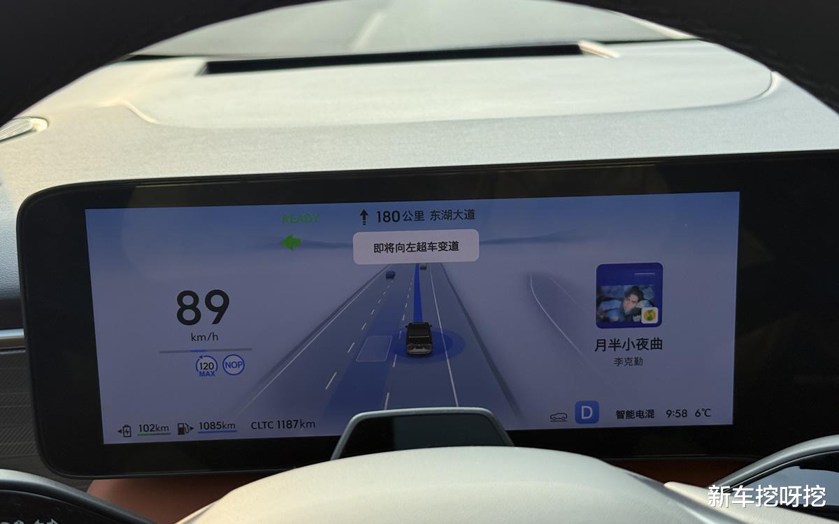 行驶至高速路公路时,我开启了领航辅助驾驶功能;这套辅助驾驶系统,功能还是相当的丰富,能够自主避让大货车,变道超车等等,而且动作还算干净利落。在接近晚上的时候,光线已经不好了,但是它还是能够正常工作,在高速公路上几乎不用接管,整体表现与自主主流车型差不多。