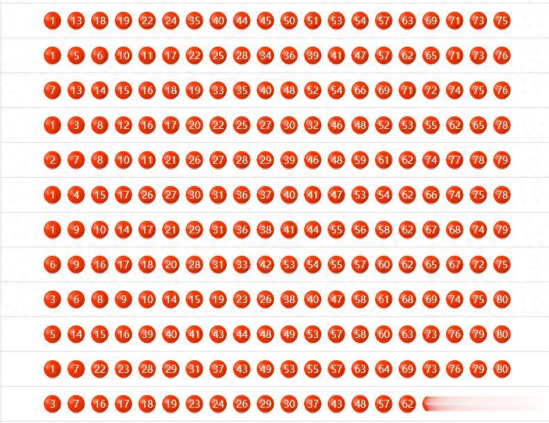 最近20期高频号码: [1, 17, 62, 75, 41, 48, 55, 53, 6, 19, 21, 31, 15, 40, 7, 14, 16, 79, 30, 65, 18, 54, 74, 44, 76, 29, 57, 52, 66, 8, 9, 10, 27, 43, 47]