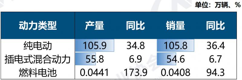 在新能源汽车主要品种中,三大类新能源汽车品种产销环比、同比均呈不同程度增长。
