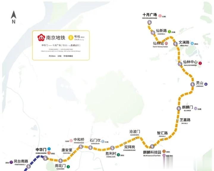 而规划中的8号线二期起始站为生态公园,最后止于中华门站,主要车站有中华门站、雨花门站、康安里站、中和桥站、石门坎站、以及沧波门站等