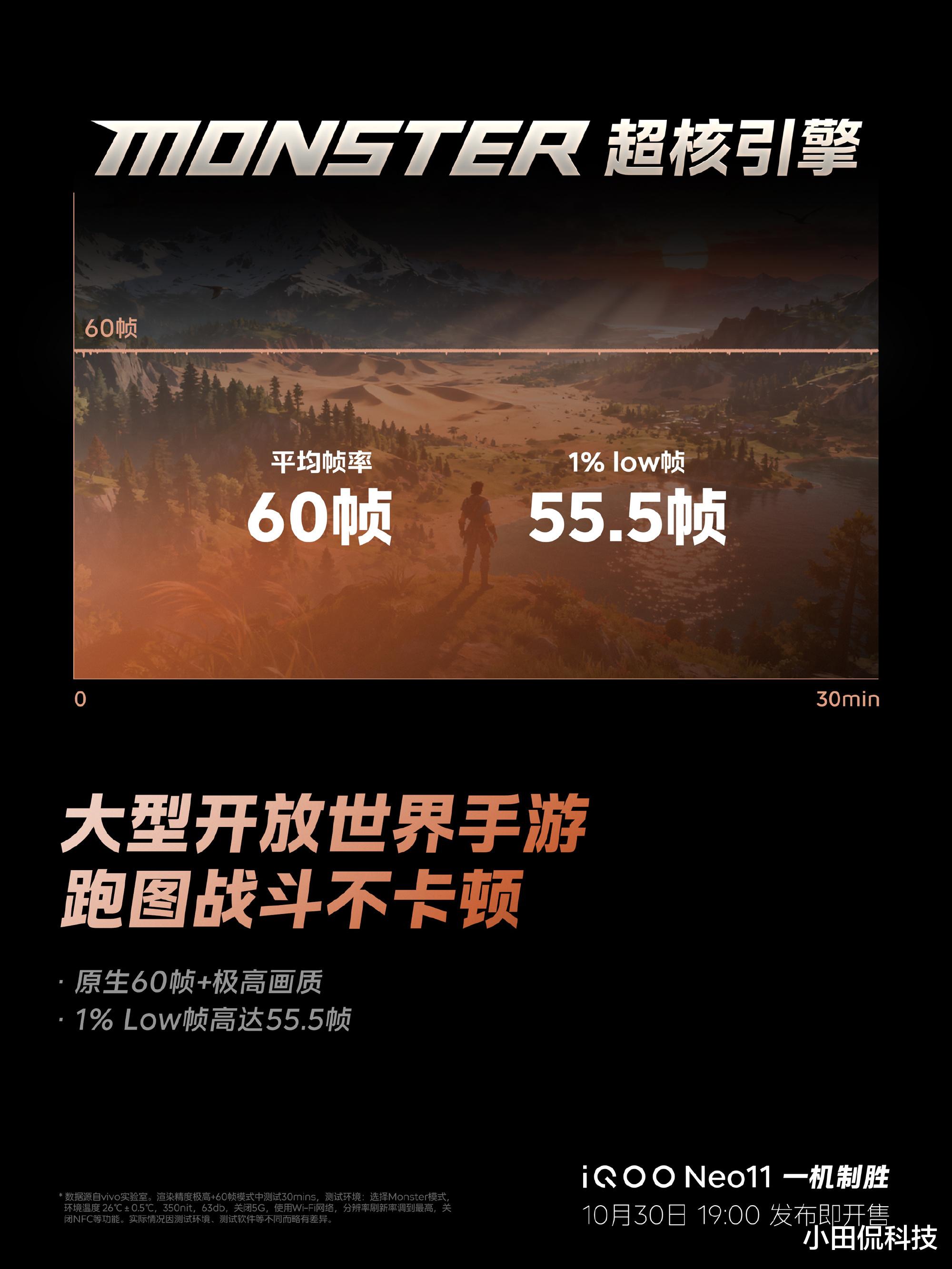对于性能党来说,手机芯片强只是基础,能否把性能“榨干榨净”还得看调度。即将于10月30日19:00发布的iQOO Neo11,直接搭载iQOO 15同款Monster超核引擎,这套“性能调度神器”凭借三大核心模块,让骁龙8至尊版+自研电竞芯片Q2的组合发挥出同平台最强实力,堪称手游玩家的“上分利器”。