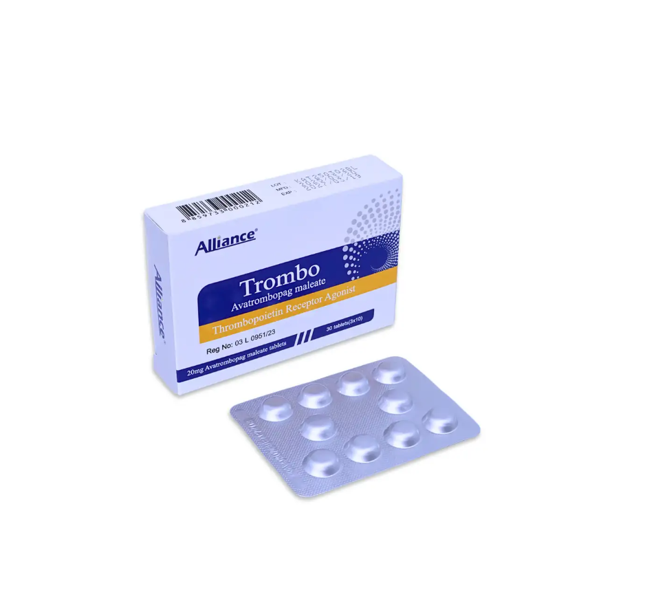 【图片插入处:两款仿制版阿伐曲波帕药盒图 ——Avalet-20/Alliance Trombo】