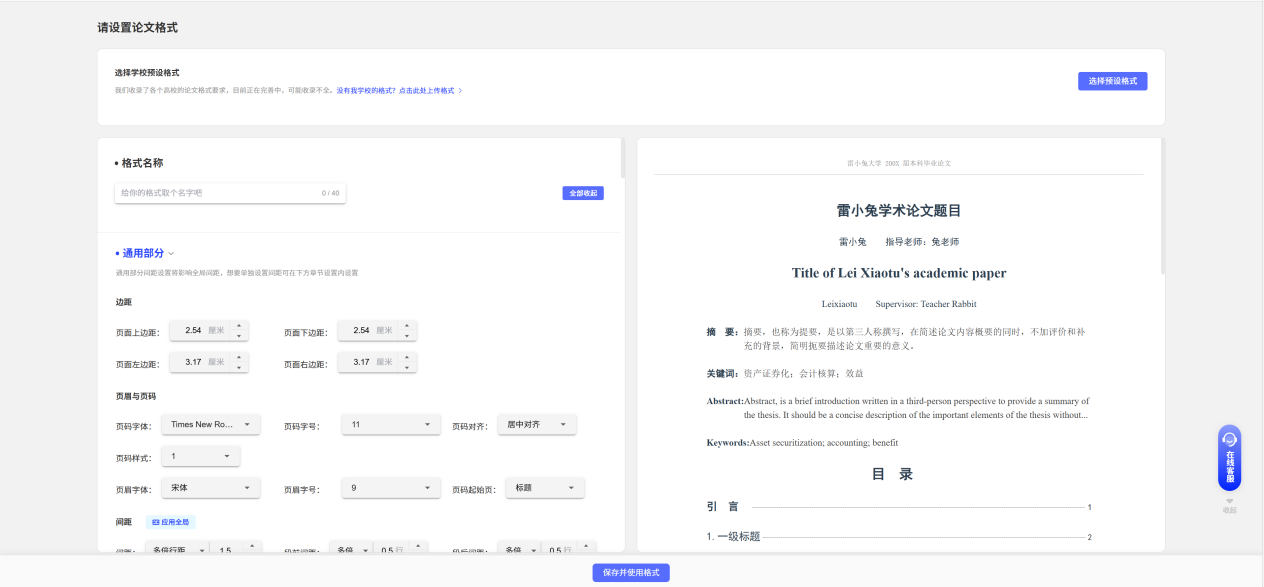排版功能很强大:预置了全国300多所高校的论文格式模板,字体大小、间距设置、页眉页脚、表格编号等一键自动调整,直接生成符合学校要求的文件;