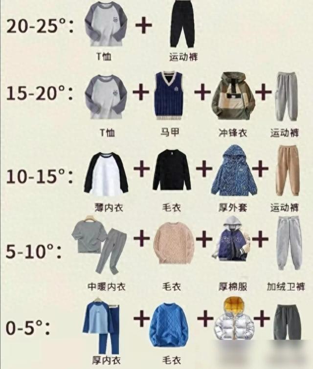 穿衣这件事真的不用靠“猜温度”碰运气,找对“温度-层次”公式,比追10个穿搭博主都管用。比如20-25℃的天,我现在每天都是一件简约T恤配运动裤出门——T恤选棉麻混纺的,吸汗不闷;运动裤选束脚的,裤脚刚好卡在脚踝,不会蹭到地铁扶手。早上挤地铁的时候,旁边穿卫衣的姑娘盯着我看,问“你不热吗?”我笑说“你摸我T恤,凉丝丝的”——这种“穿一天都不累”的舒服感,比买件贵裙子香多了。