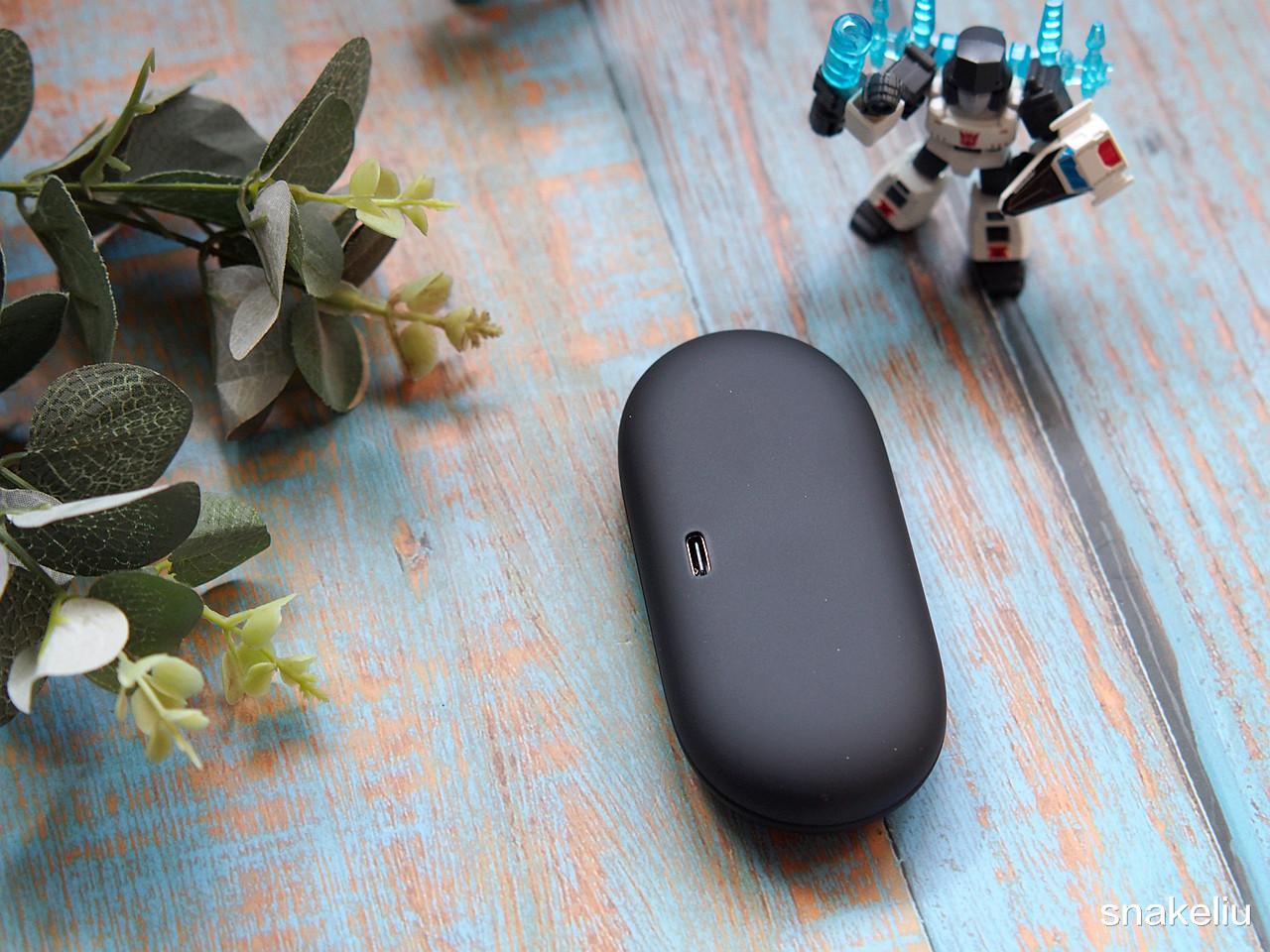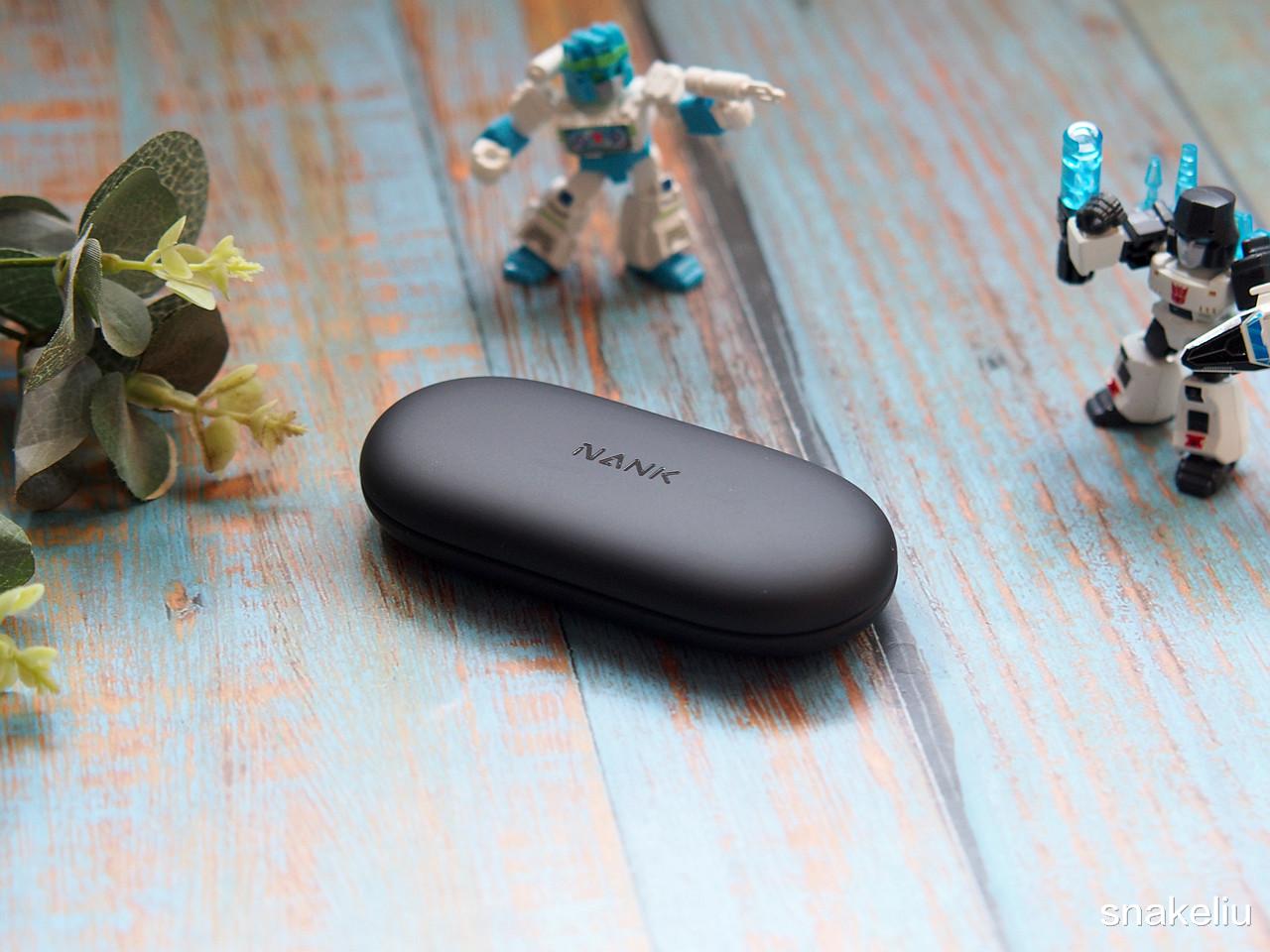 外观的设计真心不错,不说它是一款耳机,你会如何猜想?南卡wing电池盒正面有南卡的英文logo,可能是因为耳机很薄,把充电口设计在了电池盒底部,电池盒上没有一个按键,整体非常整洁。