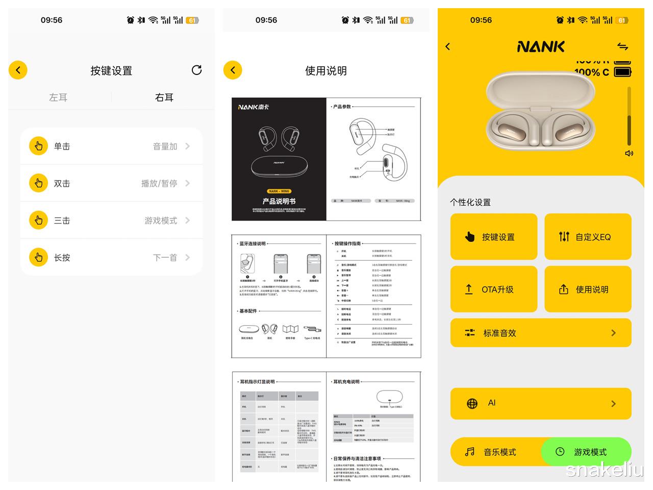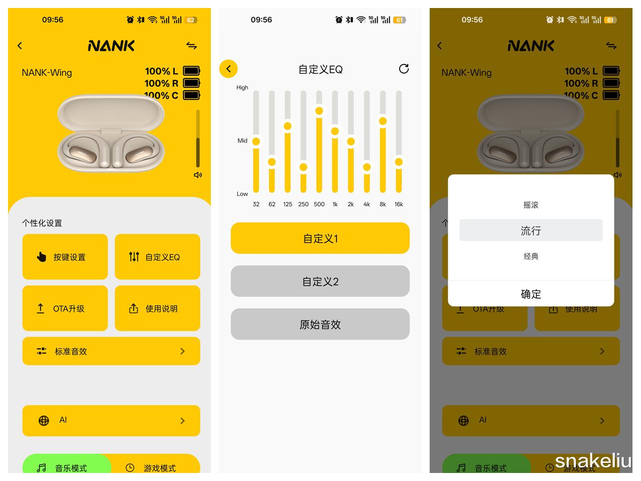 这款耳机同样可以支持南卡App,在这个手机软件里可以自定义EQ,设置标准音效,设置按键功能等。也能有接入的AI功能,和快速切换音乐模式和游戏模式功能。