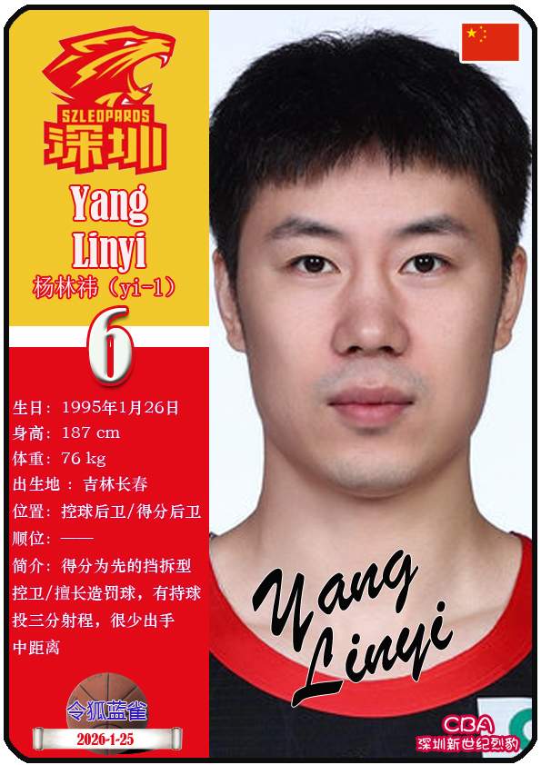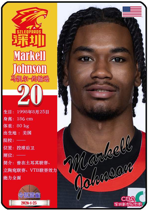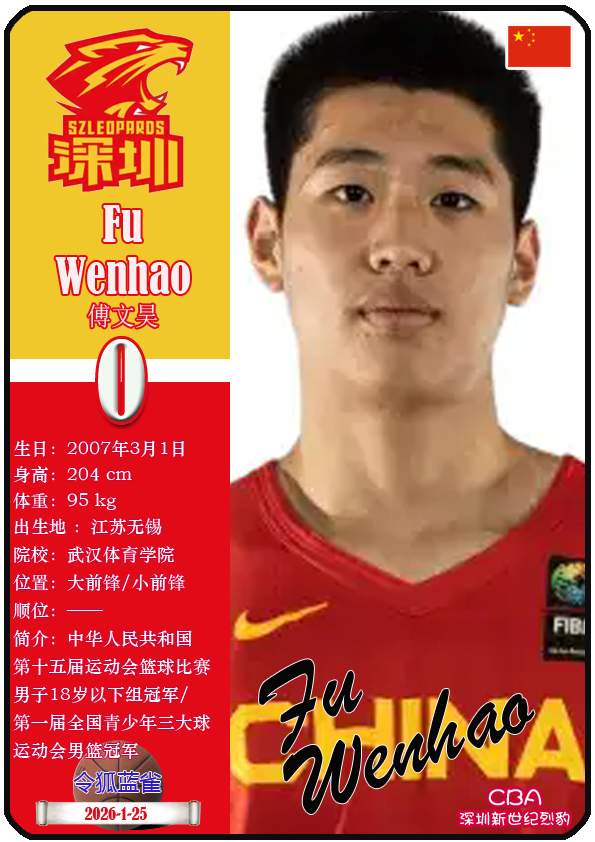 CBA深圳新世纪烈豹队的前身东莞新世纪篮球俱乐部成立于2003年7月,距今已有23年历史。截至2026年1月25日,球队主教练是郑永刚,队内拥有球员特奎维恩-史密斯、贺希宁、王浩然等。本期盘点目前CBA深圳新世纪烈豹队的19名球员(按球衣号码排序):