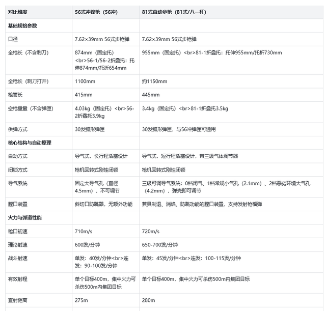 不过,值得一提的是56式冲锋枪的确在参数这方面要远不如81杠的,我整理了一下表格,详细对比了一下这两把武器的具体参数后发现,射击精度全面碾压,81杠吊打56式冲锋枪,再加上采用了人机工效实现代际升级,甚至可以单手射击,可靠性与寿命双优也远比56式冲锋枪靠谱很多,最关键的是81杠的扩展性也得到了提升,可以发射枪榴弹了。